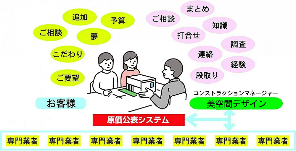 リノベーションは、直営方式で施工しますのでコストを抑えながら良質な住まいが実現します。
