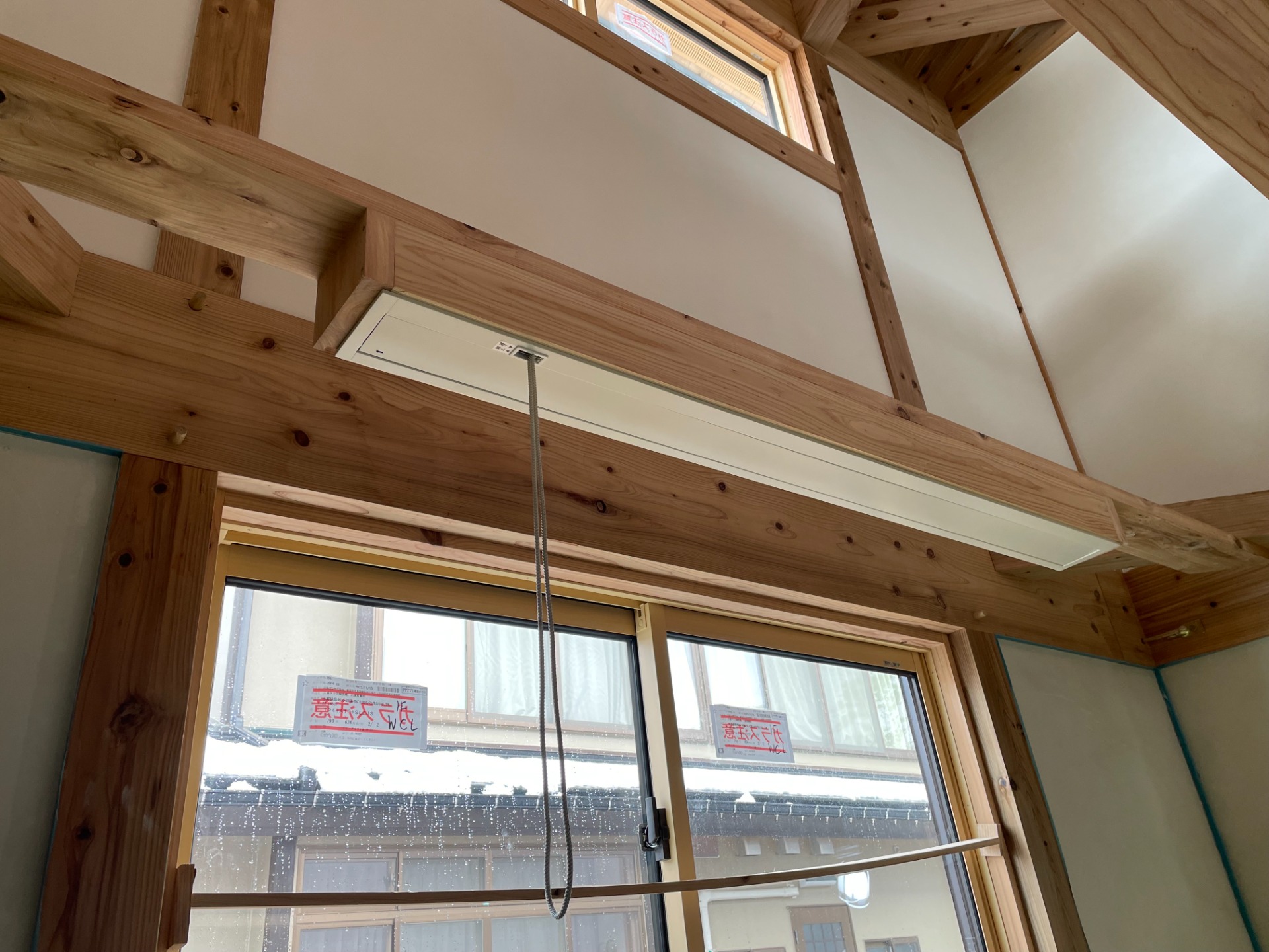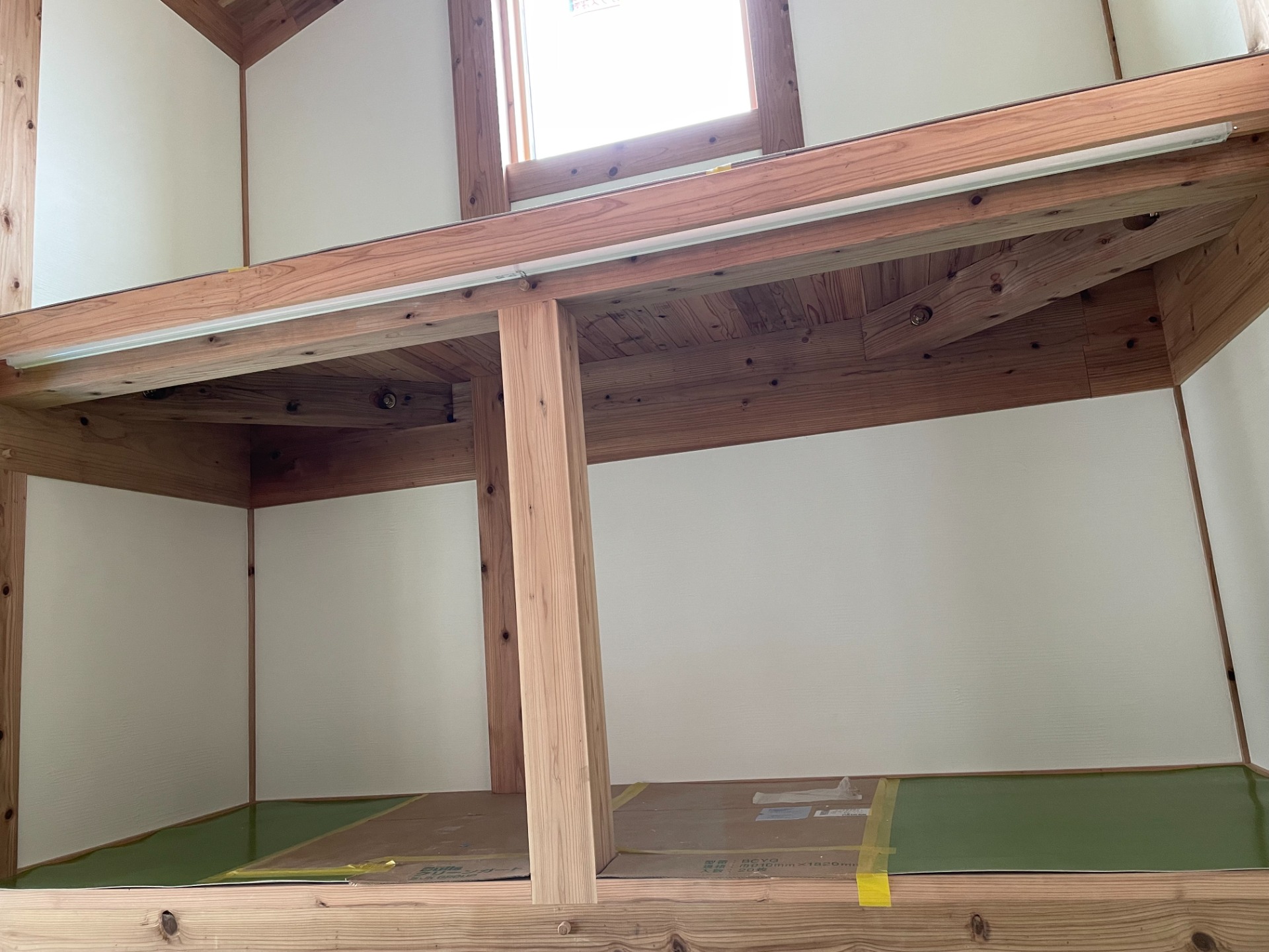 通常は、照明器具の取り付けは、クリーニング後になるのですが、塗り壁に干渉しないため先行して施工しました。