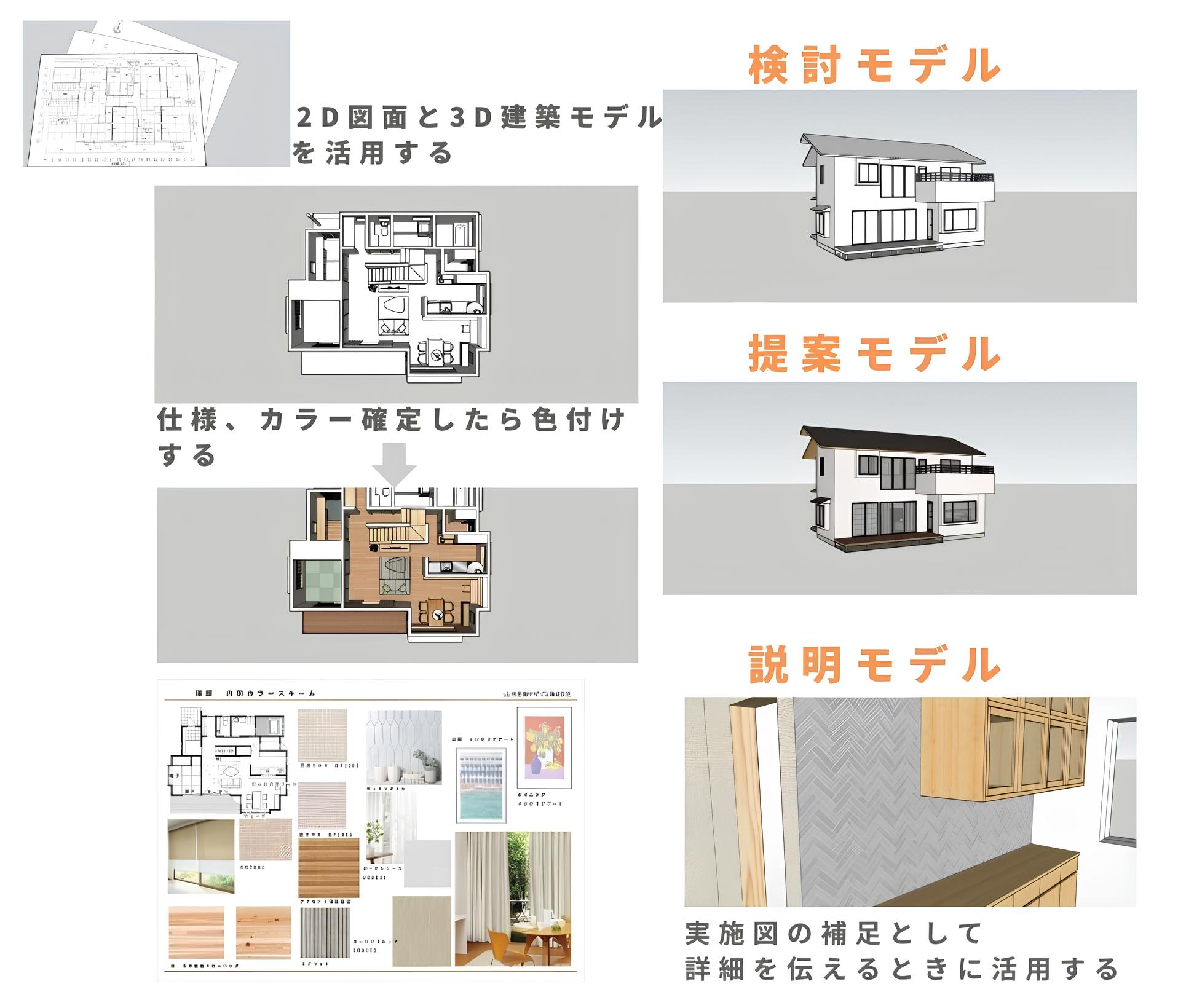 3D内観モデルと合わせて、打合せで活用することで、お客様へ具体的なイメージを確認できます。