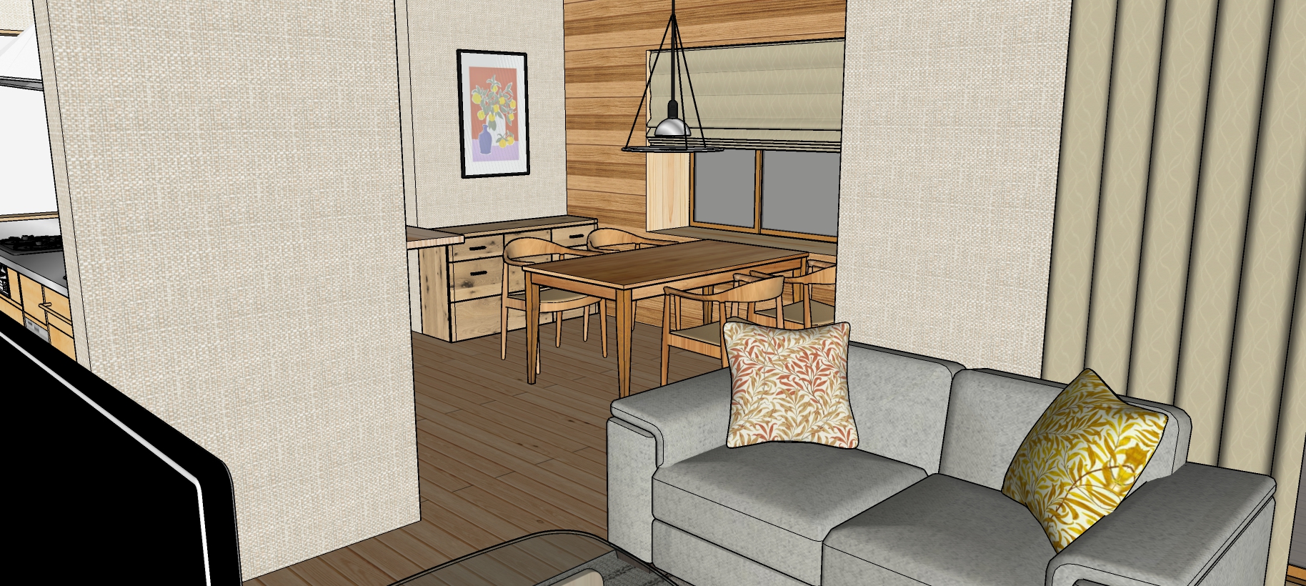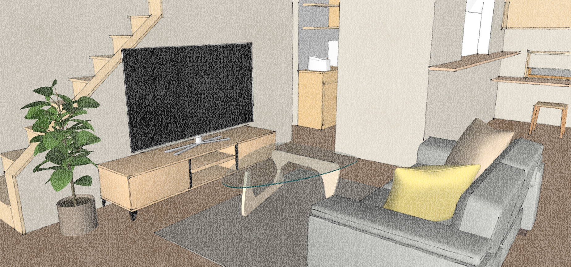 SketchUpという3DCGを使用していますので、手描きパースのような温かみのあるタッチで仕上げます。