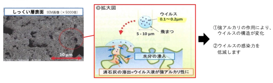 主成分である消石灰の持つ特性により抗ウイルスをはじめさまざまな機能があります。