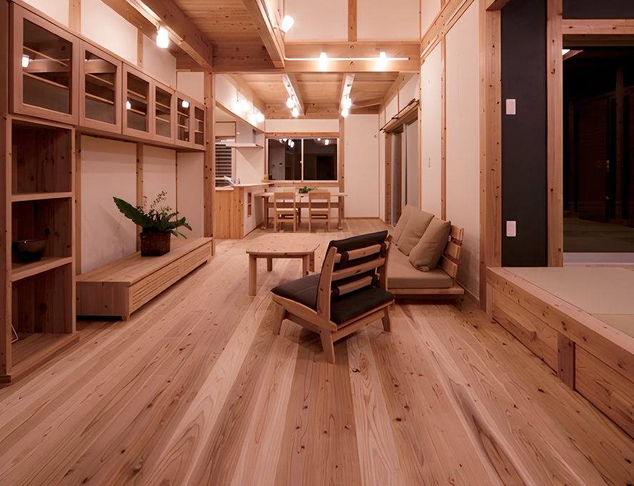 仕上げ材や合板など内装のほとんどが化学建材です。