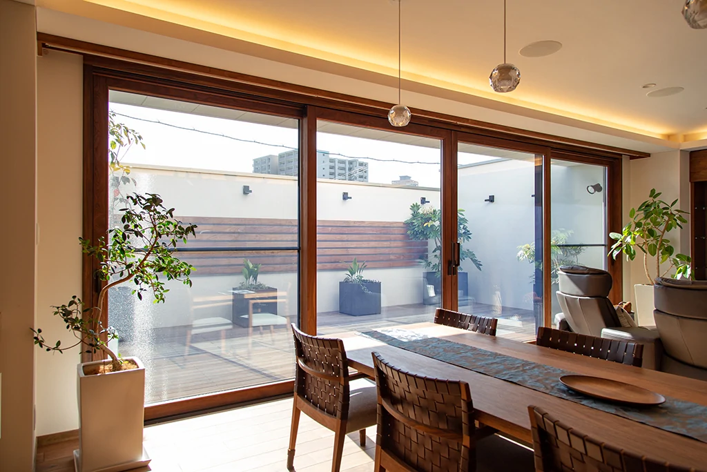 何よりも自然の木、人と環境にやさしい木製サッシですので、使い心地が温かく快適な空間となります。